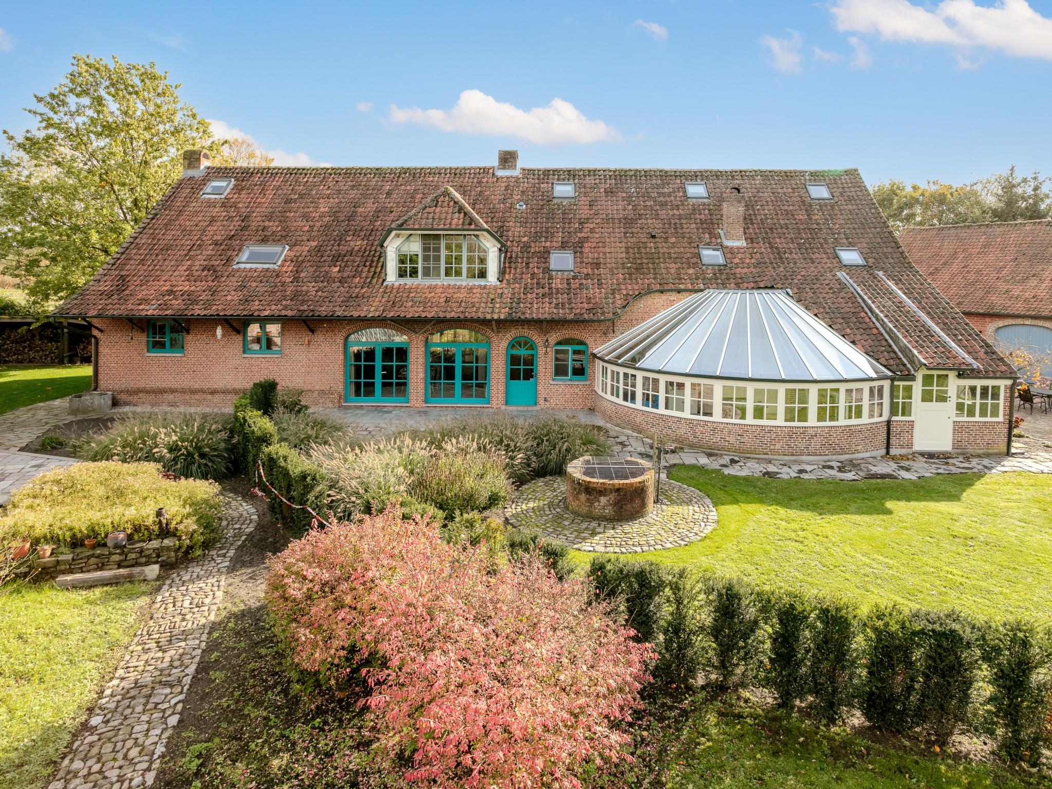 De hoeve heeft een heerlijke orangerie waar je een gezellig potje kunt ” sjotteren” . Binnen kruip je heerlijk bij het haardvuur. Geniet van een pintje in de prachtige tuin waar de kinderen naar hartenlust kunnen ravotten terwijl je zelf de barbecue of de ofyr aanmaakt