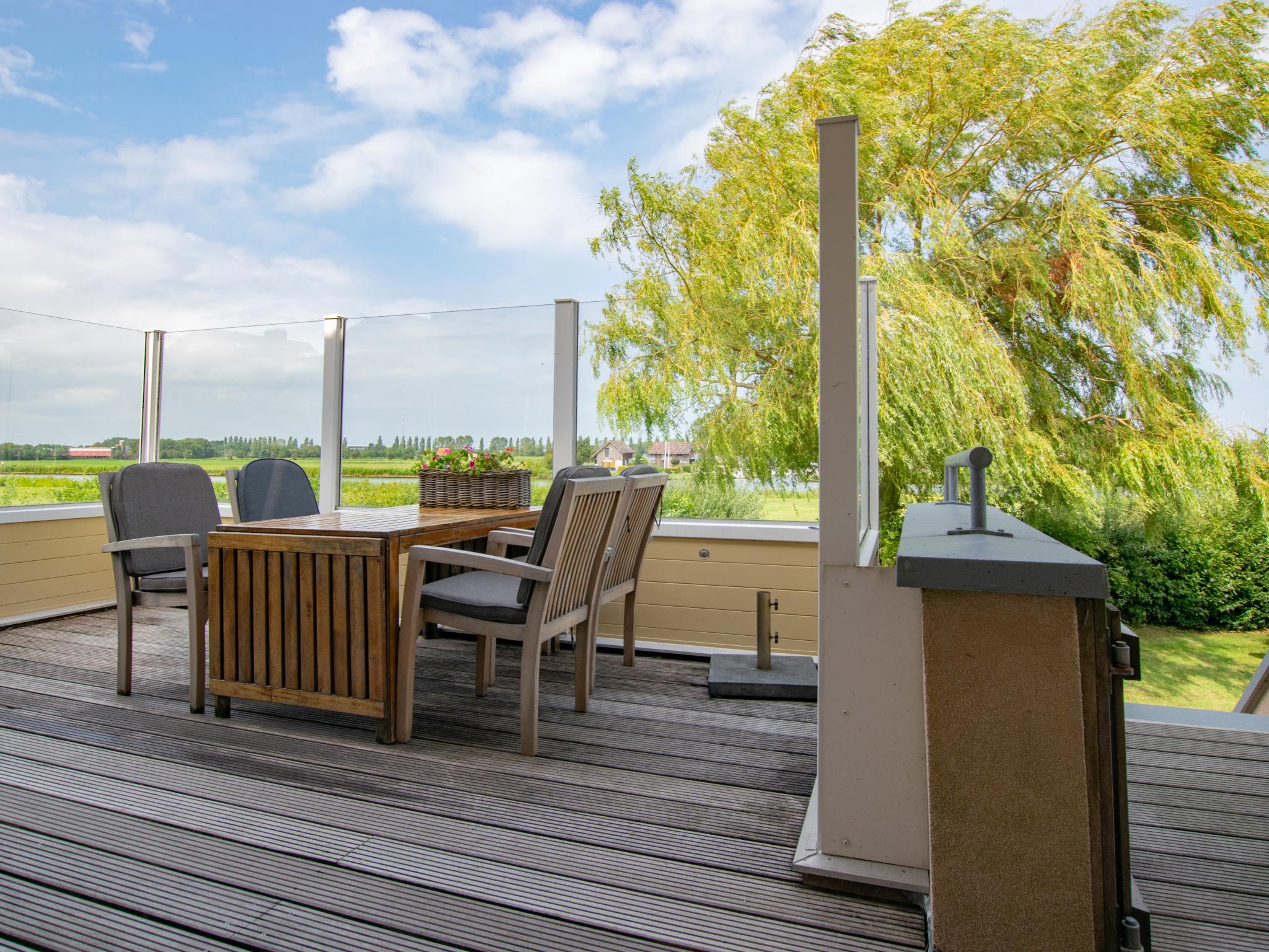Begin je vakantiedag in stijl met een kop koffie op de grote veranda, terwijl je uitkijkt op de waterrijke omgeving. Je vindt er een picknickbank ...