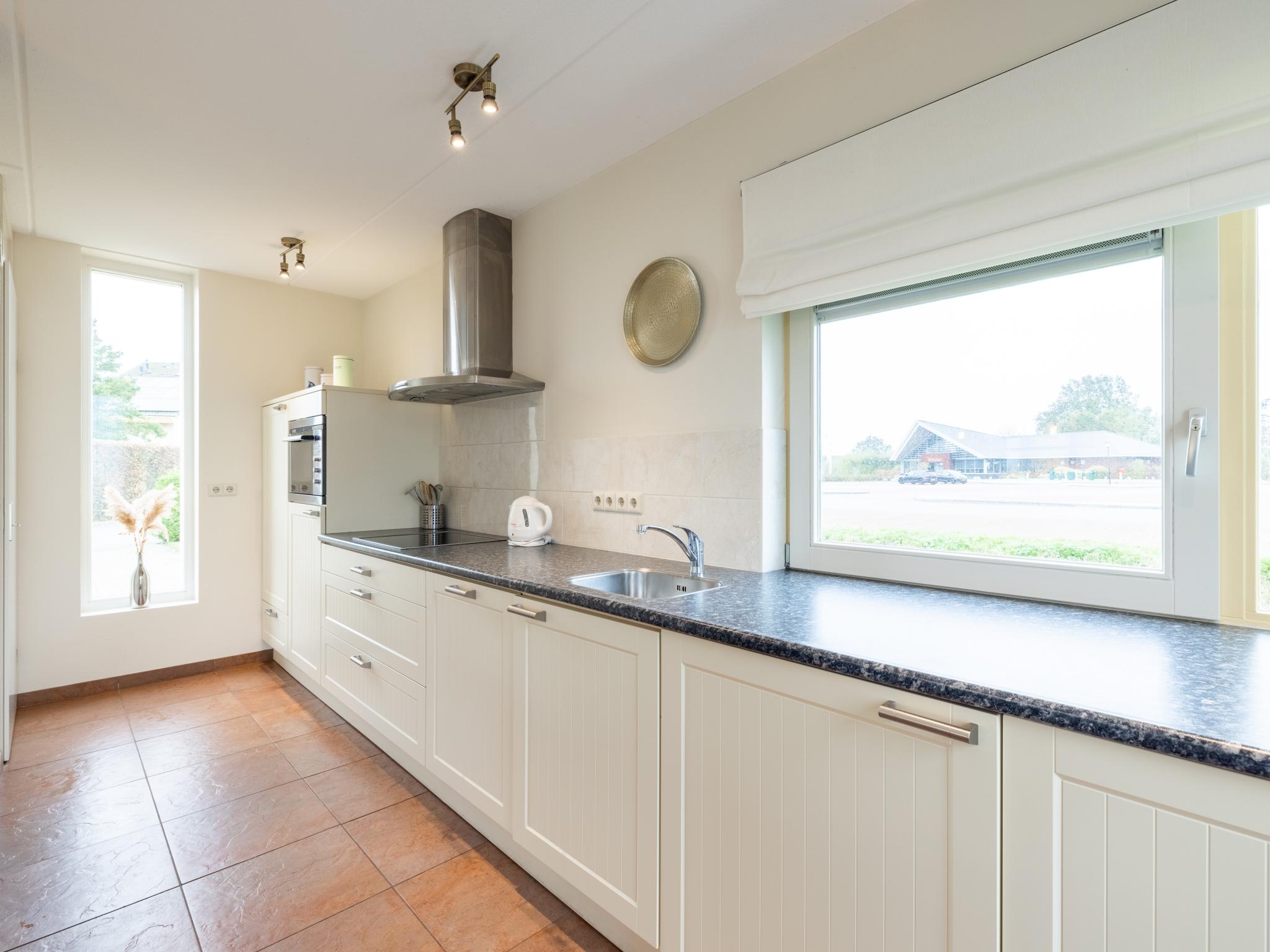 Begane grond: (hal, keuken(waterkoker, fornuis(4 kookplaten, keramisch), afzuigkap, koffiezetapparaat(cups), koffiezetapparaat(filtermaling), combimagnetron, afwasmachine, koelkast, wasdroger, wasmachine), woon/eetkamer(TV(flatscreen, satelliet), eettafel(6 personen), zithoek(6 personen), DVD-speler, CD-speler), toilet, 1x kinderstoel)
