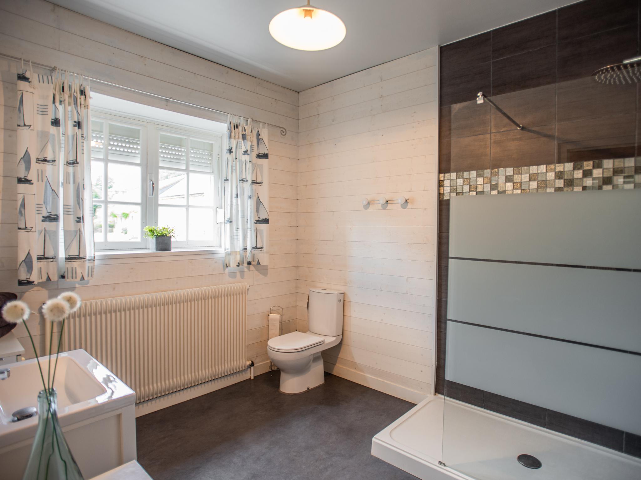 Op de 1e etage: (3x slaapkamer(2x 1-pers. bed(90 x 200 cm)), badkamer(douche(cabine, Regen), wastafel, wc))