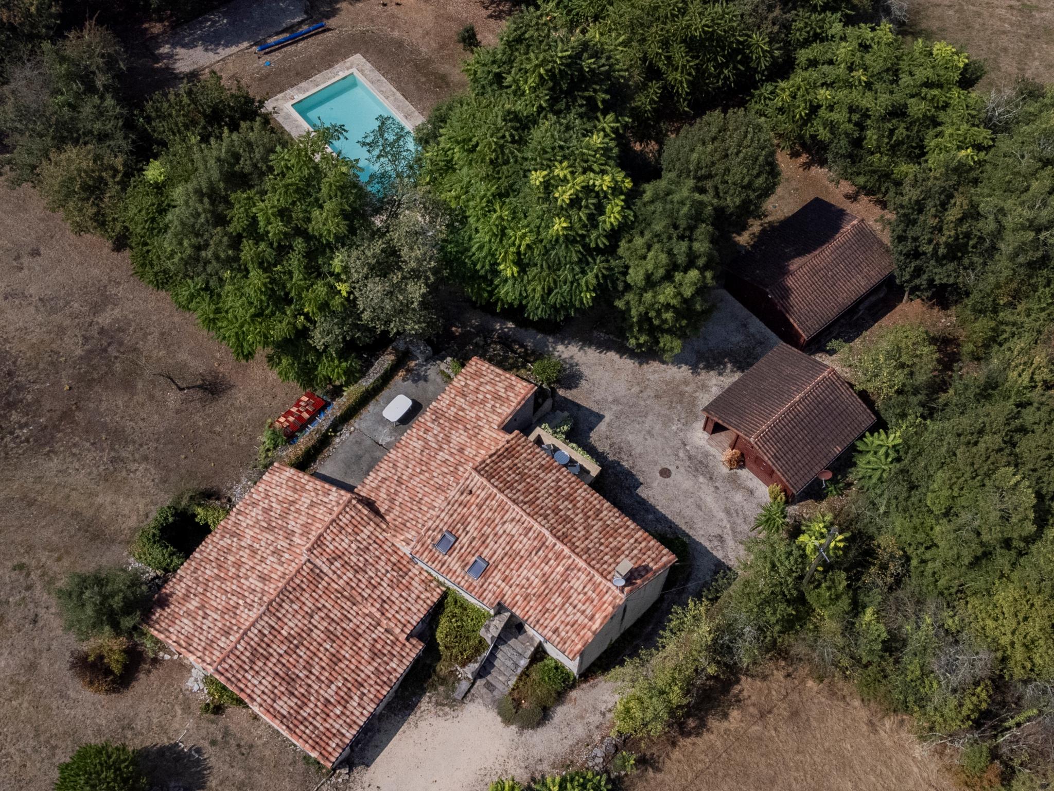 Er is een terras aan de achterzijde van het huis waar men kan genieten van de rust en het uitzicht over de tuin en het grote privézwembad
