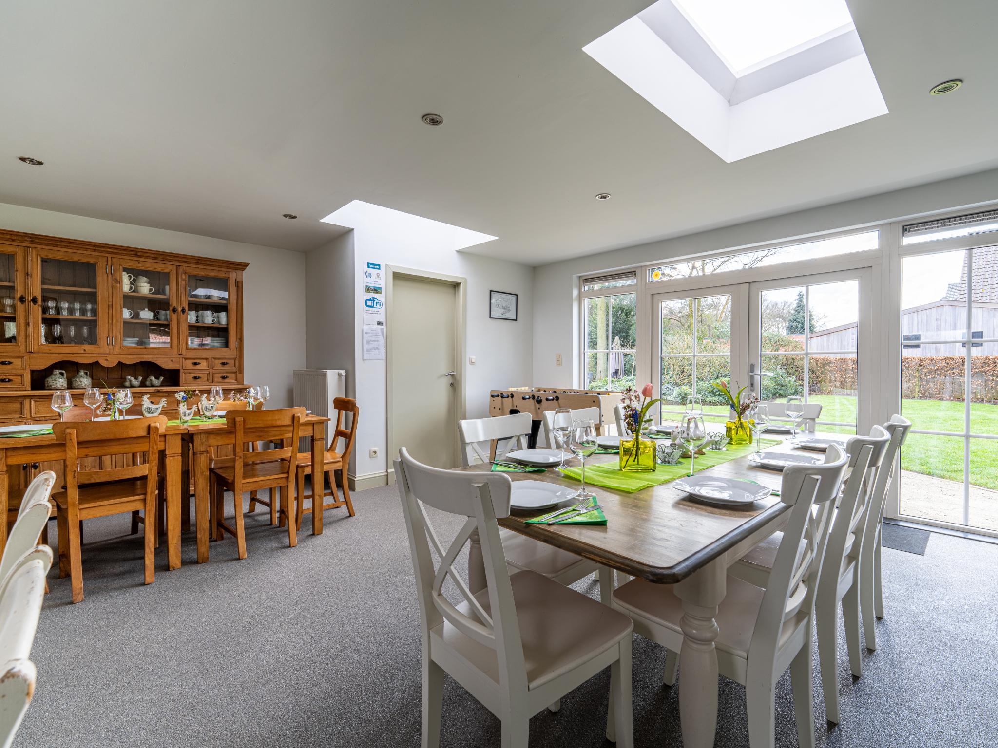 1x garage(1 parkeerplaats), terras, tuin, tuinmeubilair, BBQ(houtskool), 1x parking, tafelvoetbal, 2x kinderbed (excl. beddengoed), 2x kinderstoel