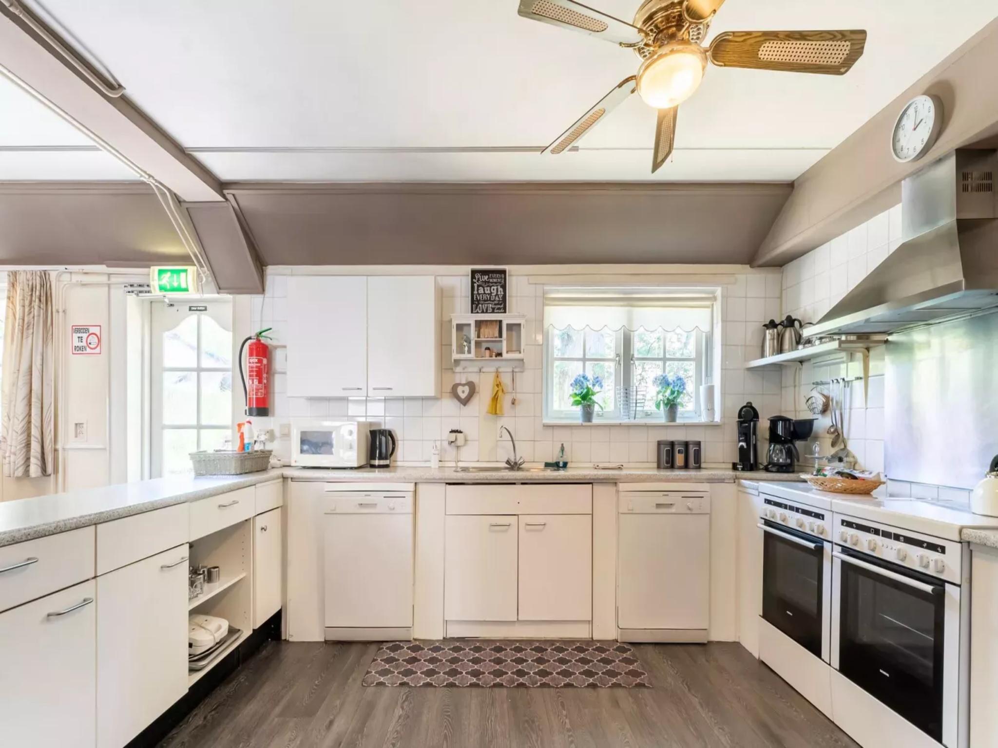 Begane grond: (hal, keuken(waterkoker, afzuigkap, koffiezetapparaat(filtermaling, pads), 2x oven, magnetron, 2x afwasmachine), woon/eetkamer(TV, eettafel(22 personen), zithoek(8 personen)), slaapkamer met badkamer(2x 1-pers. bed, douche, wastafel, wc), slaapkamer met badkamer(2-pers. bed, douche, wastafel, wc), slaapkamer met badkamer(2-pers. bed, douche, wastafel, wc), recreatieruimte(tafelvoetbal, biljart, gezelschapsspellen))