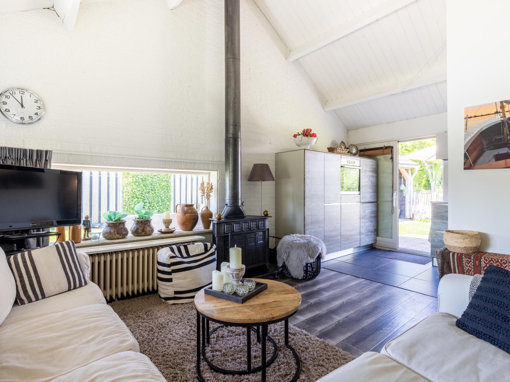 Begane grond: (woonkamer(TV(flatscreen, Nederlandse zender(s), Duitse zender(s), internationale zender(s)), eettafel(5 personen), kachel(hout), zithoek), keuken(waterkoker, fornuis(5 kookplaten, gas), afzuigkap, koffiezetapparaat(cups), oven, combimagnetron, afwasmachine, koelkast), slaapkamer(2-pers. bed, wastafel), slaapkamer(2x 1-pers. bed), slaapkamer(twijfelaar), badkamer(douche(Regen), wastafel, wc), berging(vriezer, wasdroger, wasmachine))