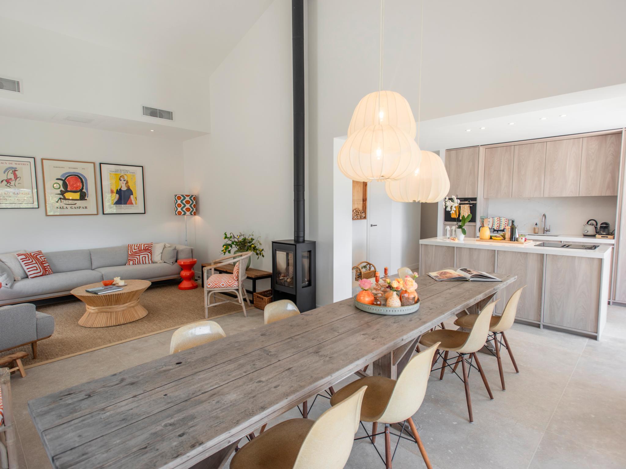 Begane grond: (open keuken(waterkoker, broodrooster, fornuis(4 kookplaten, inductie), afzuigkap, koffiezetapparaat(cups), oven(elektrisch), magnetron, afwasmachine, koel-/vriescombinatie, citruspers, Staafmixer), woon/eetkamer(TV(smart TV), eettafel(8 personen), kachel(hout), zithoek, airconditioning), slaapkamer(2-pers. bed(boxspring, 160 x 200 cm), airconditioning), slaapkamer(2-pers. bed(boxspring, 160 x 200 cm), airconditioning), badkamer(douche(inloopdouche, Regen), wastafel, wastafel), toilet, wasruimte(wasdroger, wasmachine), berging(stofzuiger, 1x kinderbed (excl. beddengoed), 2x kinderstoel, strijkplank, strijkijzer))