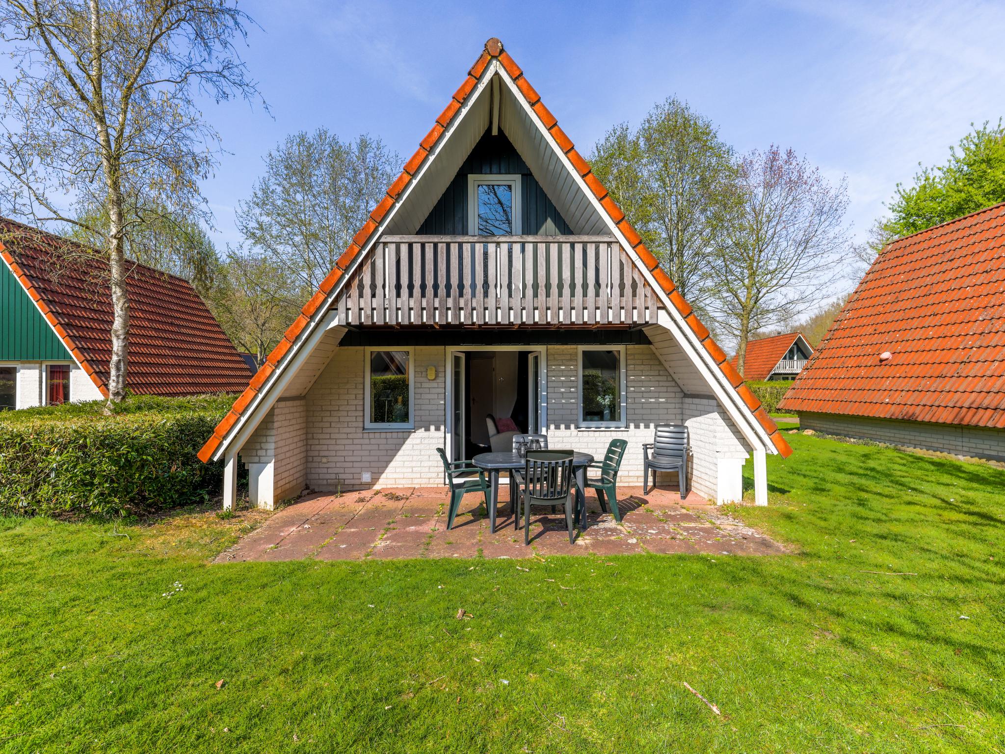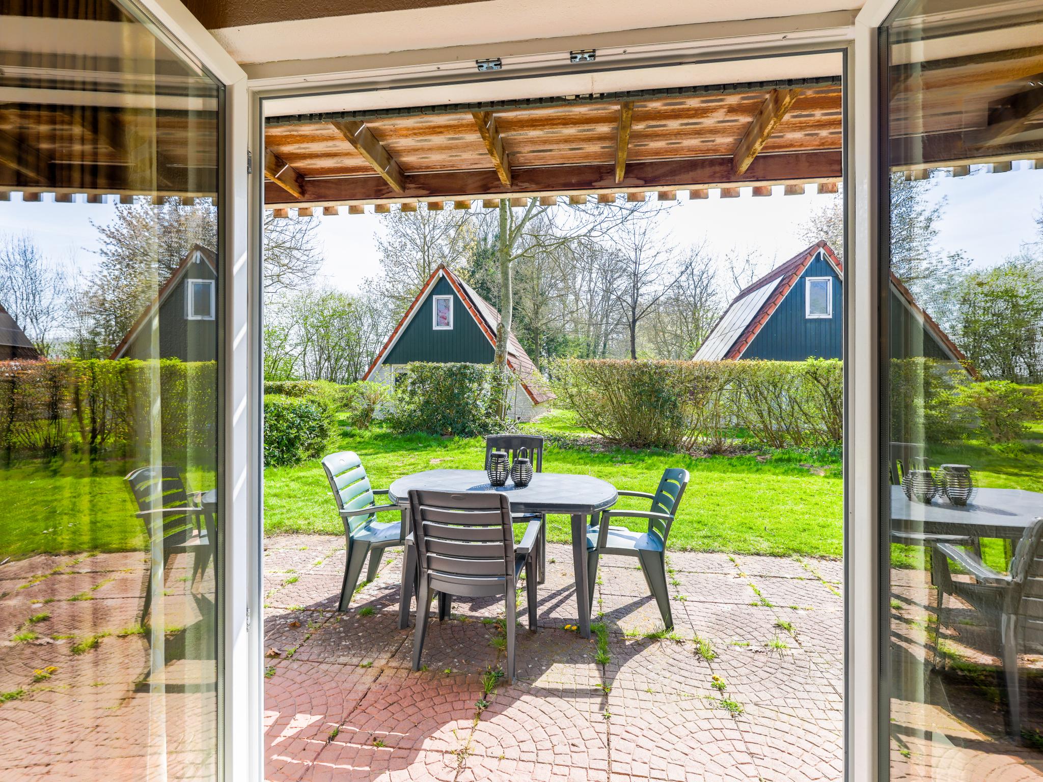 tuindeuren, tuin(niet omheind, 265 m2), tuinmeubilair(6 personen), 2x parking, zwembad(gedeeld met andere gasten, overdekt, inclusief separaat peuterzwembad (diepte 50cm), 20 x 10 m., Gehele jaar geopend), zwembad(gedeeld met andere gasten, buiten, inclusief separaat peuterzwembad (diepte 50cm), geopend van Jul t/m Aug), tennisbaan(gedeeld met andere gasten, tegen betaling), speeltoestellen(gedeeld met andere gasten), traphekje, Volleybalterrein(gedeeld met andere gasten)