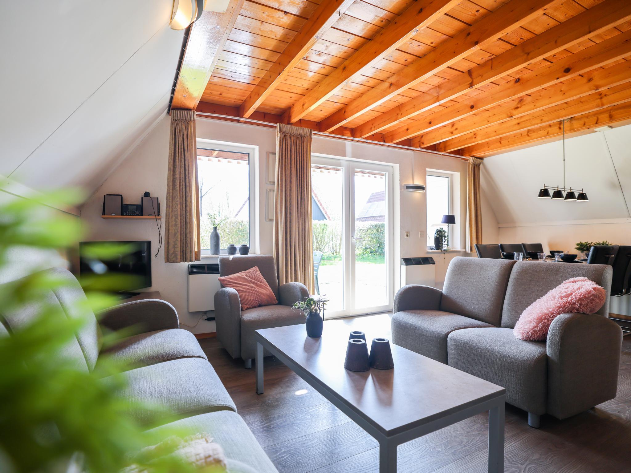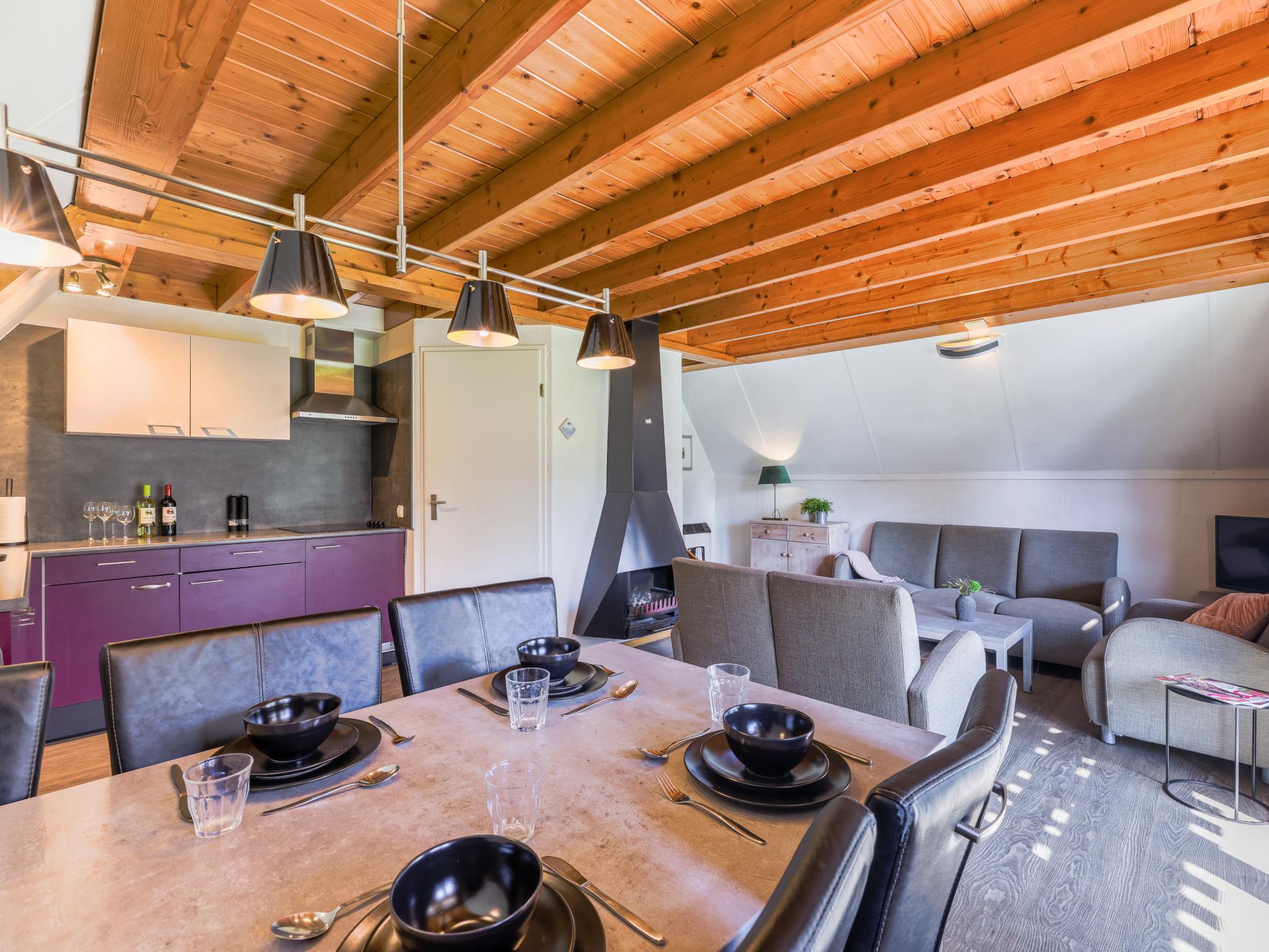 Begane grond: (hal, open keuken(kookplaat(4 kookplaten, elektrisch), waterkoker, afzuigkap, koffiezetapparaat(filtermaling), combimagnetron, afwasmachine), woon/eetkamer(TV(flatscreen, Nederlandse zender(s), Duitse zender(s), internationale zender(s)), eettafel(6 personen), open haard, zithoek), slaapkamer(2x 1-pers. bed(90 x 200 cm)), badkamer(douche(inloopdouche), wastafel), toilet, berging(wasdroger, wasmachine))