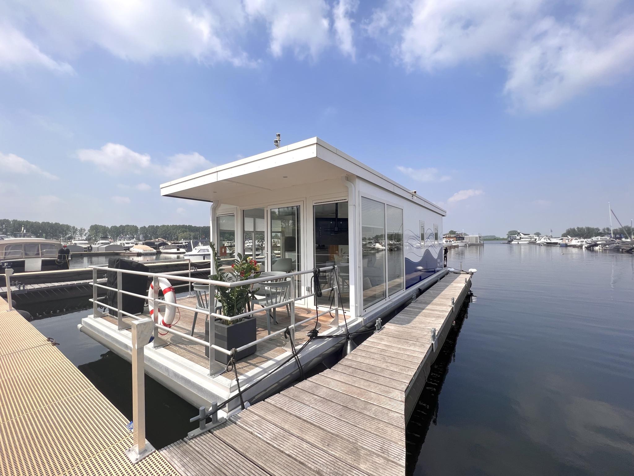 Op een prachtige locatie aan de Zandmeren in Kerkdriel, net in Gelderland ligt deze mooie woonboot.