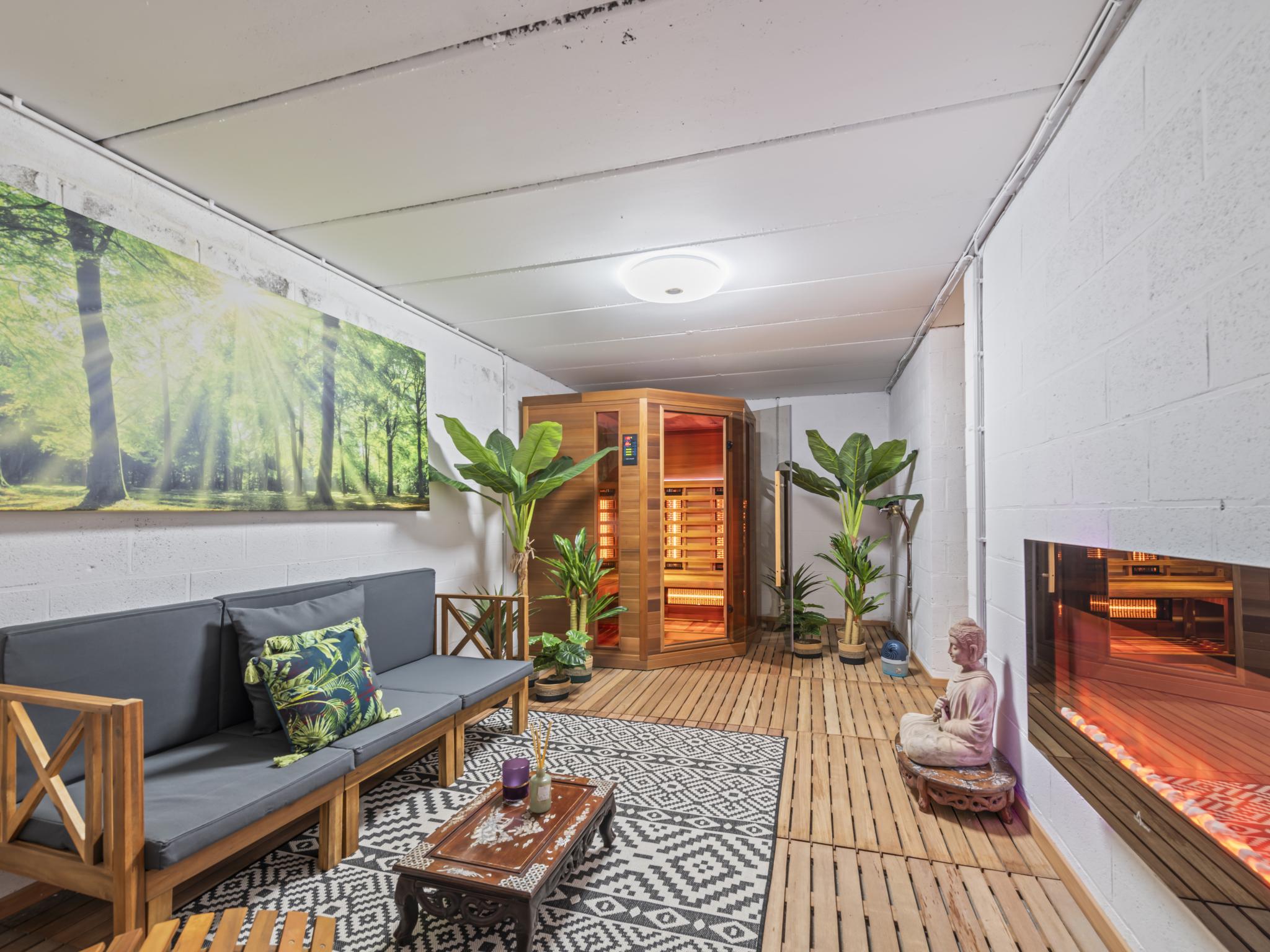 spa bad(buiten), terras(privé), tuin(privé, omheind), fietsenberging, tuinmeubilair, BBQ(gas), 3x parking, vijver(omheind), parasol, zonneluifel, lounge set, Tuinhuis