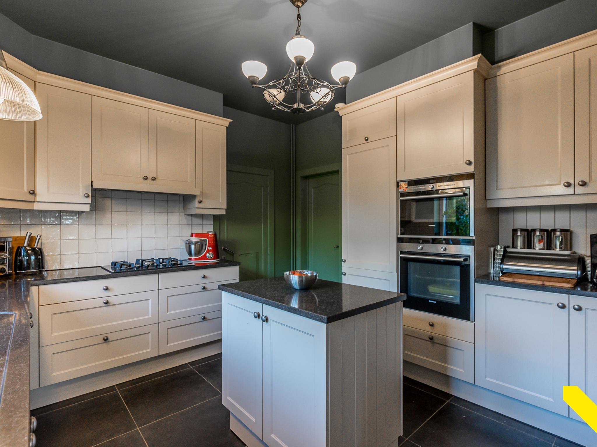Begane grond: (hal, keuken(broodrooster, fornuis(4 kookplaten, gas), afzuigkap, 2x koffiezetapparaat(nespresso cups), oven, koelkast), woon/eetkamer(TV, eettafel, zithoek, 1x kinderstoel), toilet, 1x kinderstoel)